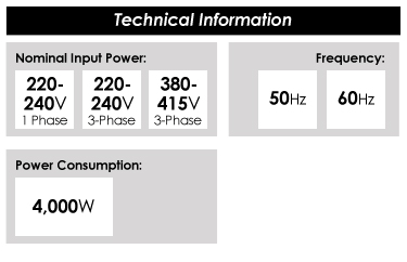 The temperature varies from 30°C to 200°C with 2,000W light bulb.