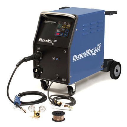 The UltraMig 225HP is a powerful SYNERGIC machine designed for a wide variety of applications including MIG brazing of fully galvanized steel using SILICONE-BRONZE wire and MIG welding of STEEL and ALUMINUM all in one package.