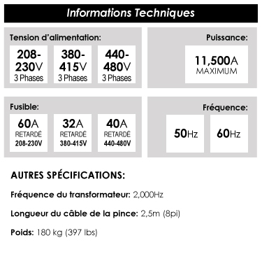 11,500 ampères réels et constants à la pointe de l'électrode.