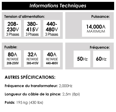 à minimiser les pertes d'énergie dues à la résistance électrique et à l'induction. Génération d'impulsions électriques contrôlées avec la pente de la courbe de soudure.
