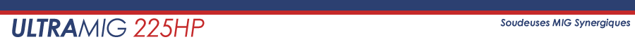 UltraMig 225HP est une puissante soudeuse MIG Synergique conçue pour une large variété d'applications, incluant le Soudo-Brasage MIG de l'acier galvanisé et la soudure MIG de l'acier et de l'aluminium.